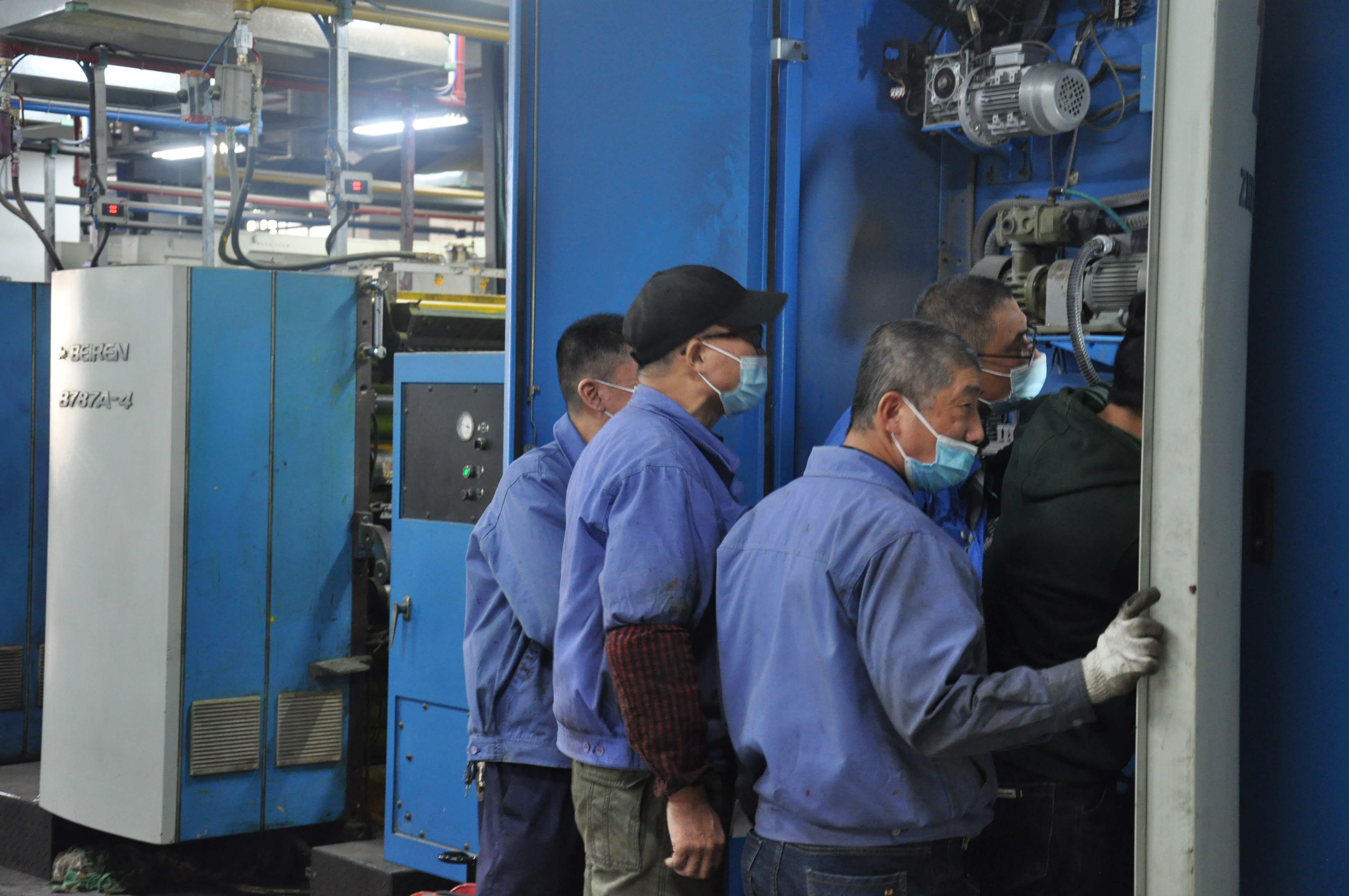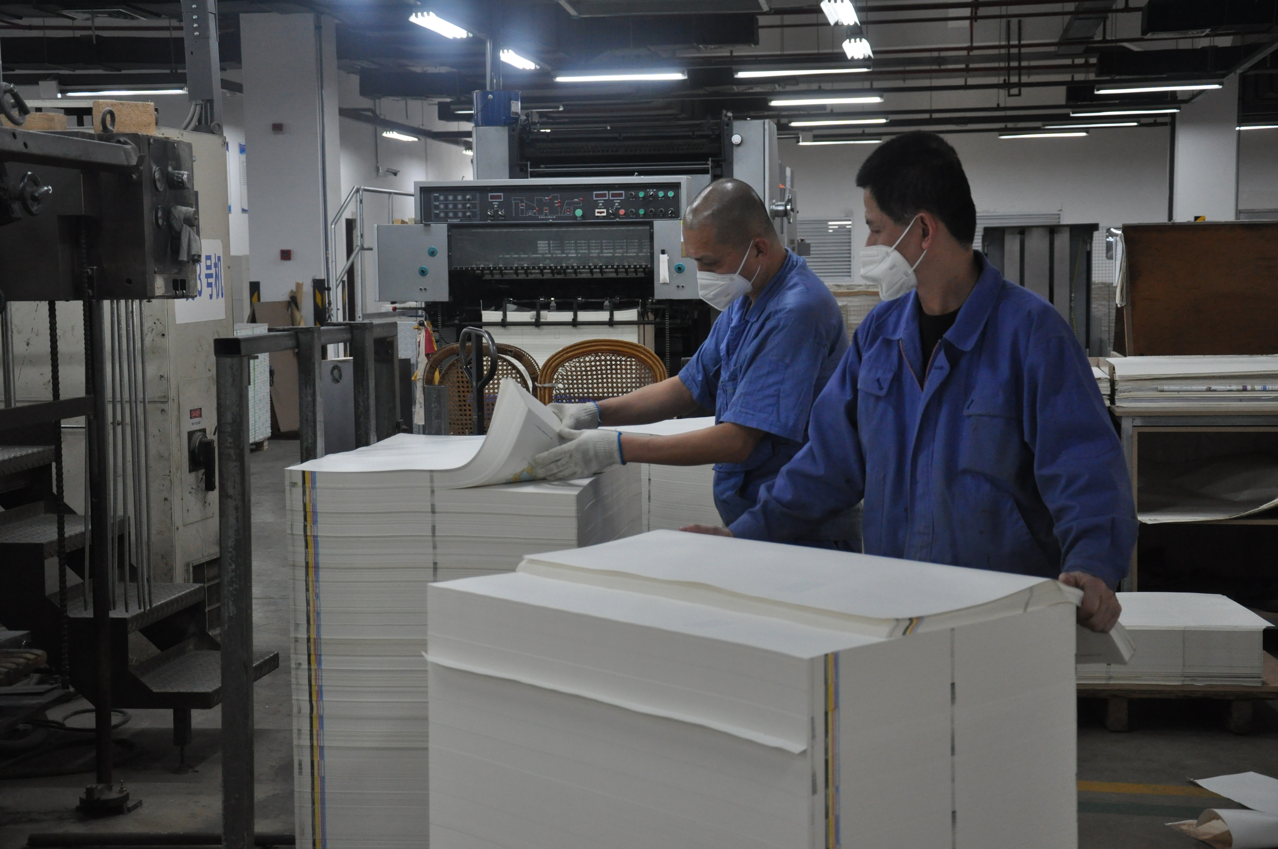 印务集团在付印时间迟、印制周期短、人员用工紧、疫情防控进入新阶段的情况下,第一时间动员部署教材印制工作,生产街接、质量控制、人员保障、物资供应、后勤服务等各部门协同发力,确保集团规模化协同生产优势的高效发挥。集团春节期间倡议全体员工“以爱为家、奉献在岗”, 设备24小时不停歇高速运转,工人们“两班倒”不停工,开足马力、满负荷运行,昼夜兼程,争分夺秒,深挖潜、夺高产、抓质量、抢周期,以实际行动践行国有企业的责任担当。