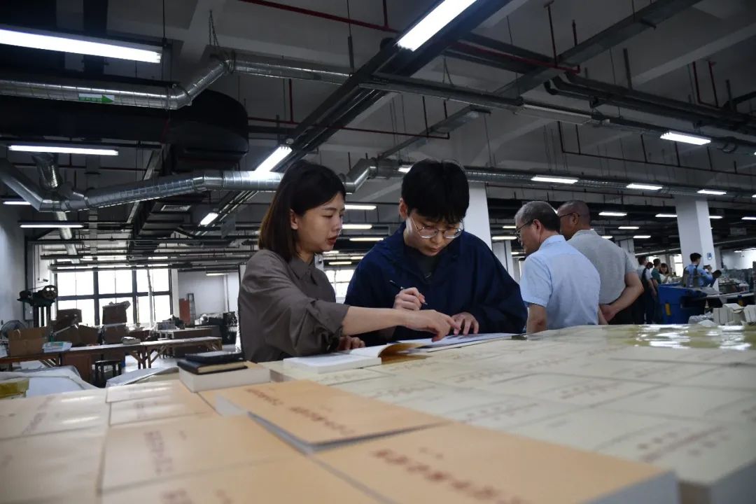 本次联学共学活动在印务集团园区开展。活动适逢印务集团正在光荣印制主题教育学习用书,参加活动的党员干部先后参观了印务集团主题教育学习用书印制生产中心、纸张历史展区、印刷历史展区等,认真听取了印务集团在引进新设备、新技术以及在数字化、智能化推进等方面的情况介绍,深入学习了解印刷的生产流程、印制工艺、生产设备及纸张印刷发展史等。同时,省出版物监测与研究中心的党员同志发挥专业所长,对主题教育学习用书进行了现场抽样检测,并提出了相关指导意见。参观结束后,相关党员干部围绕学习贯彻习近平新时代中国特色社会主义思想,以推进本单位事业高质量发展为主题,聚焦主责主业,主动担当作为,推进文化自信自强,增强中华文明传播力影响力,推动主题教育落实落细进行了深入的交流座谈。