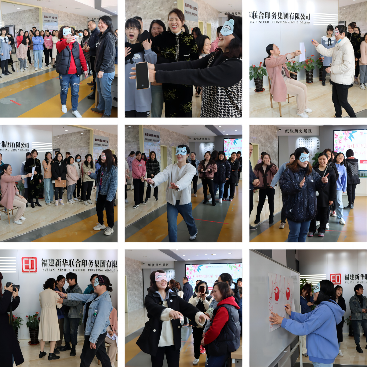女职工们戴上眼罩,原地转两圈,然后走向指定位置,看似简单,短短几步的路程,把“鼻子”贴好确实不易,有的在贴鼻子的路上“迷了路”,有的把“鼻子”贴出了界,有的贴在了笑脸的脸颊上,惹得众人捧腹大笑,一下将游戏气氛推至高潮。