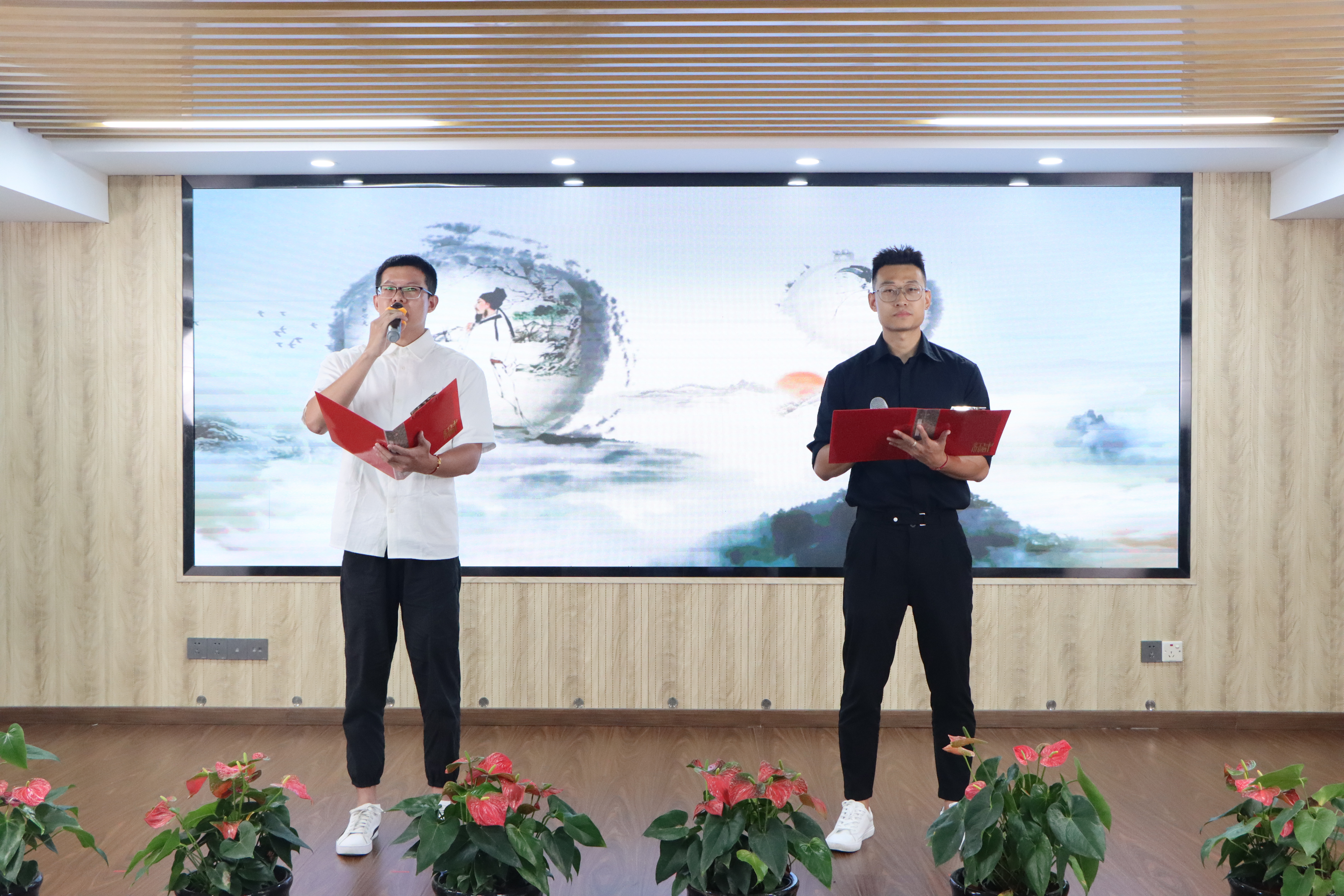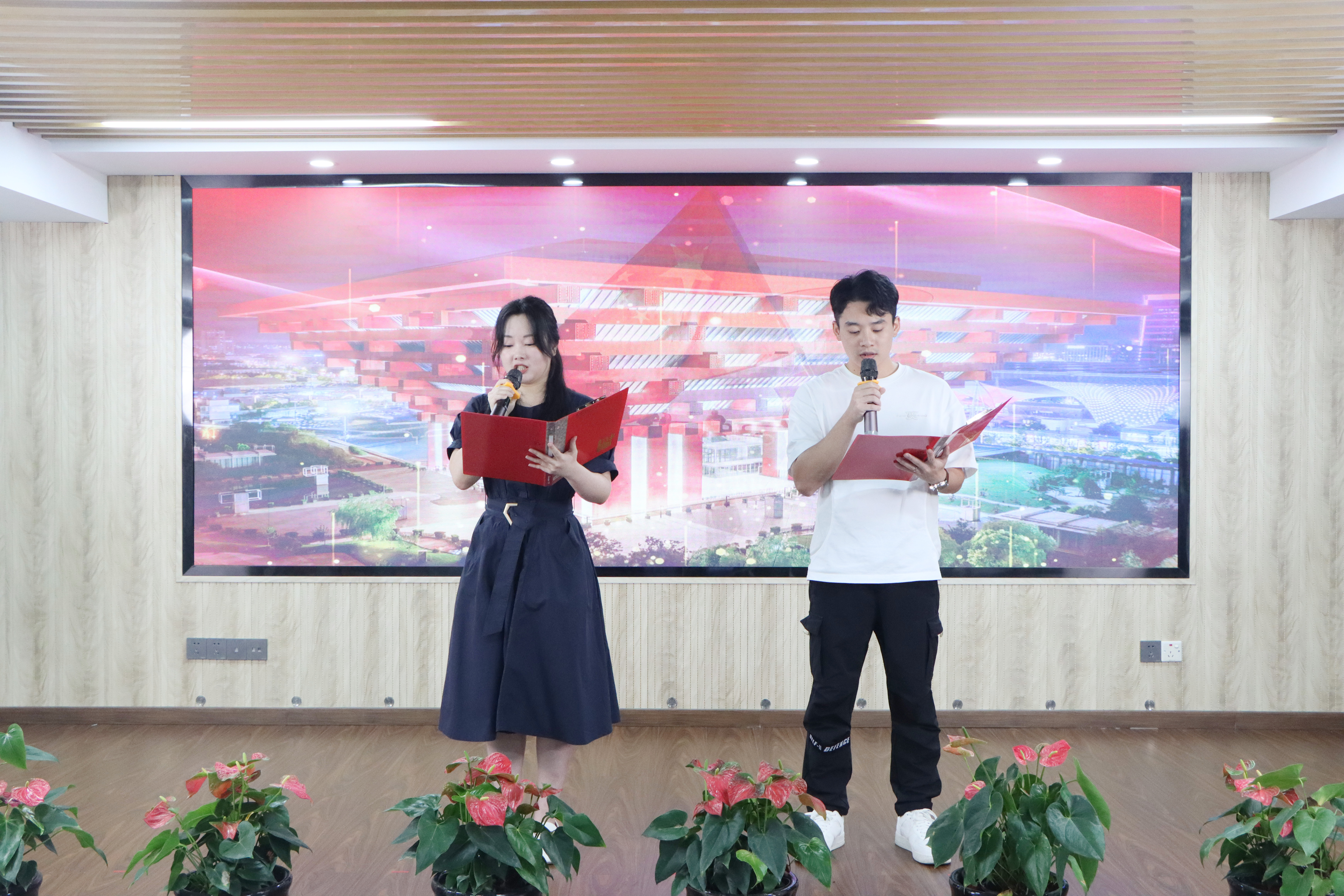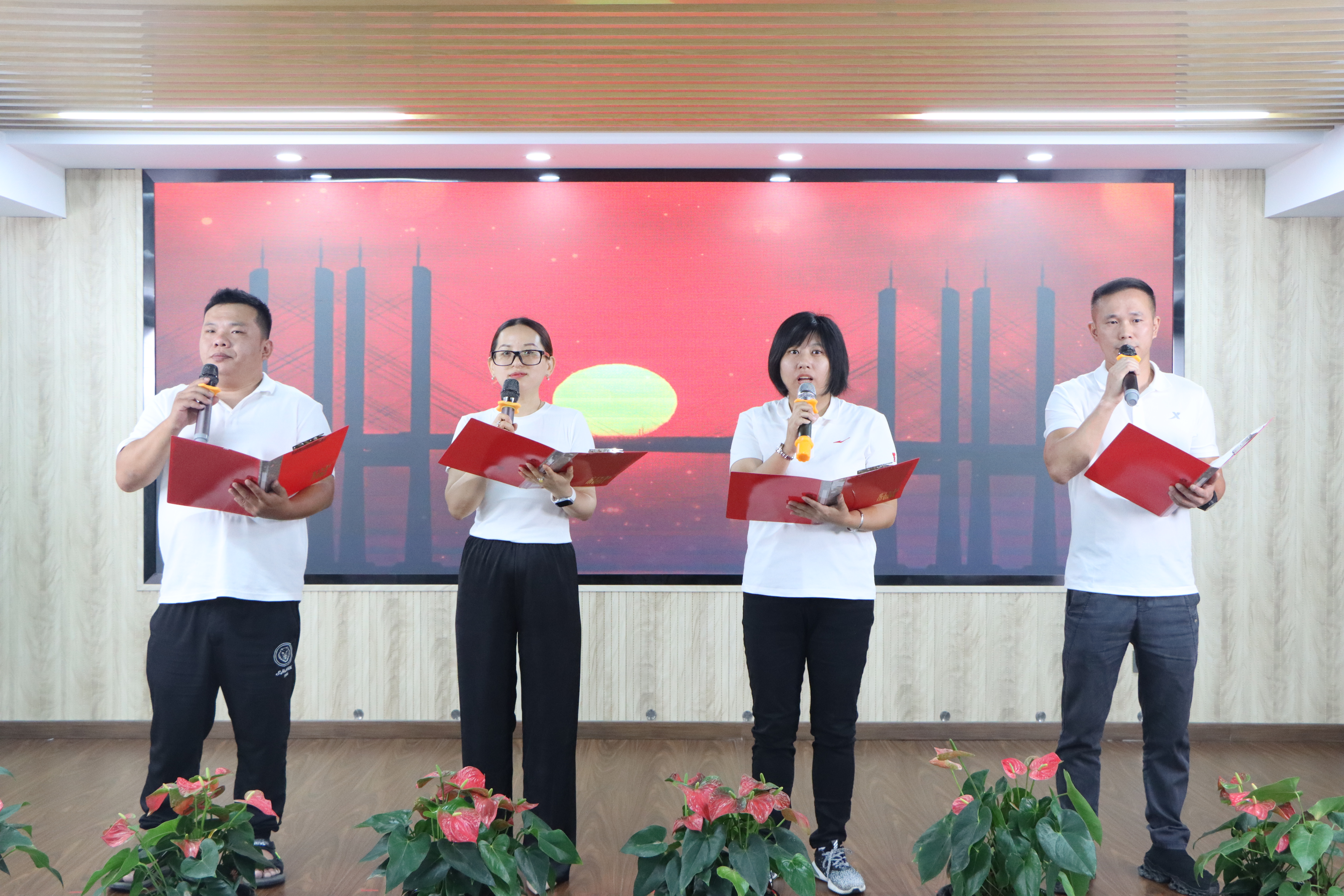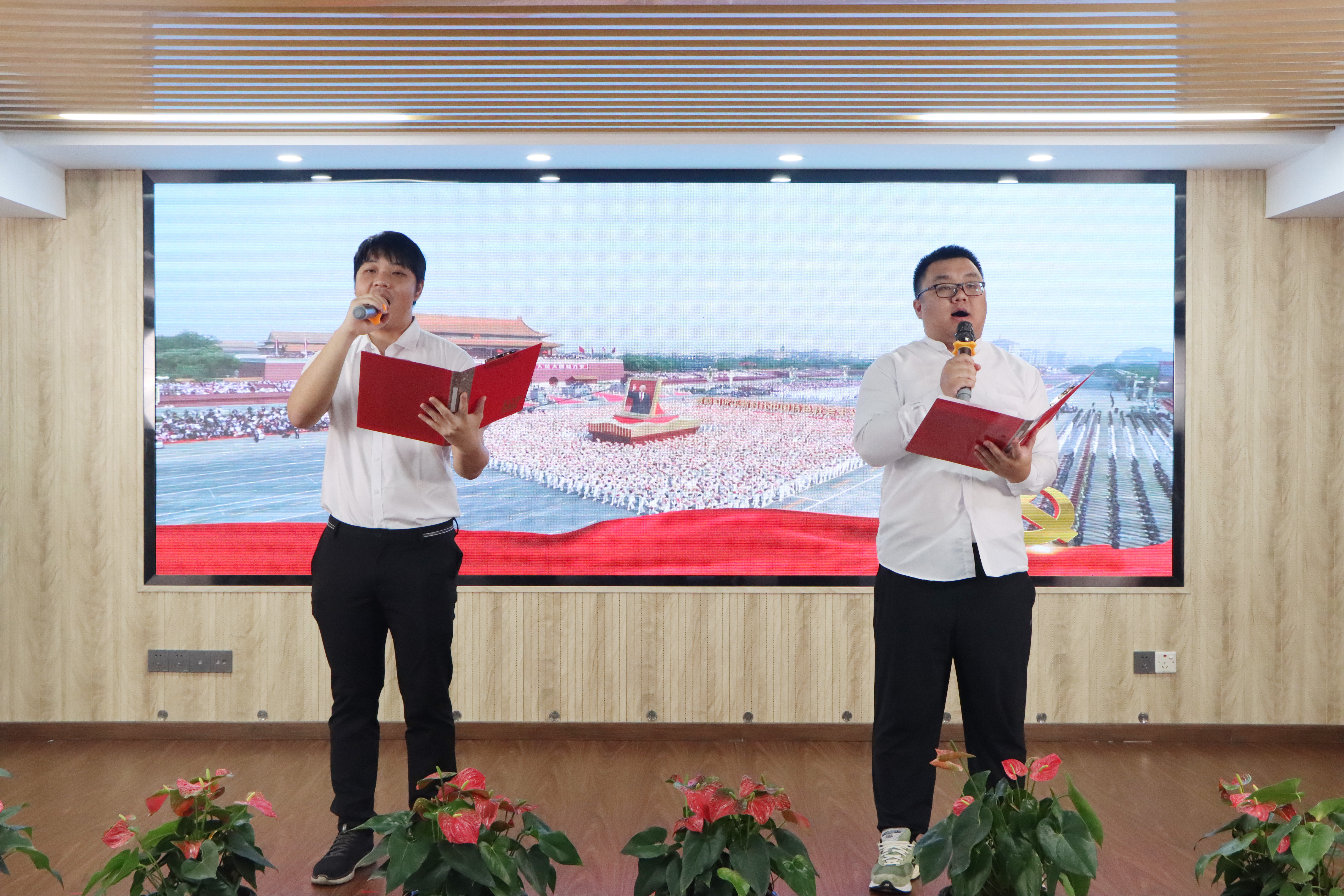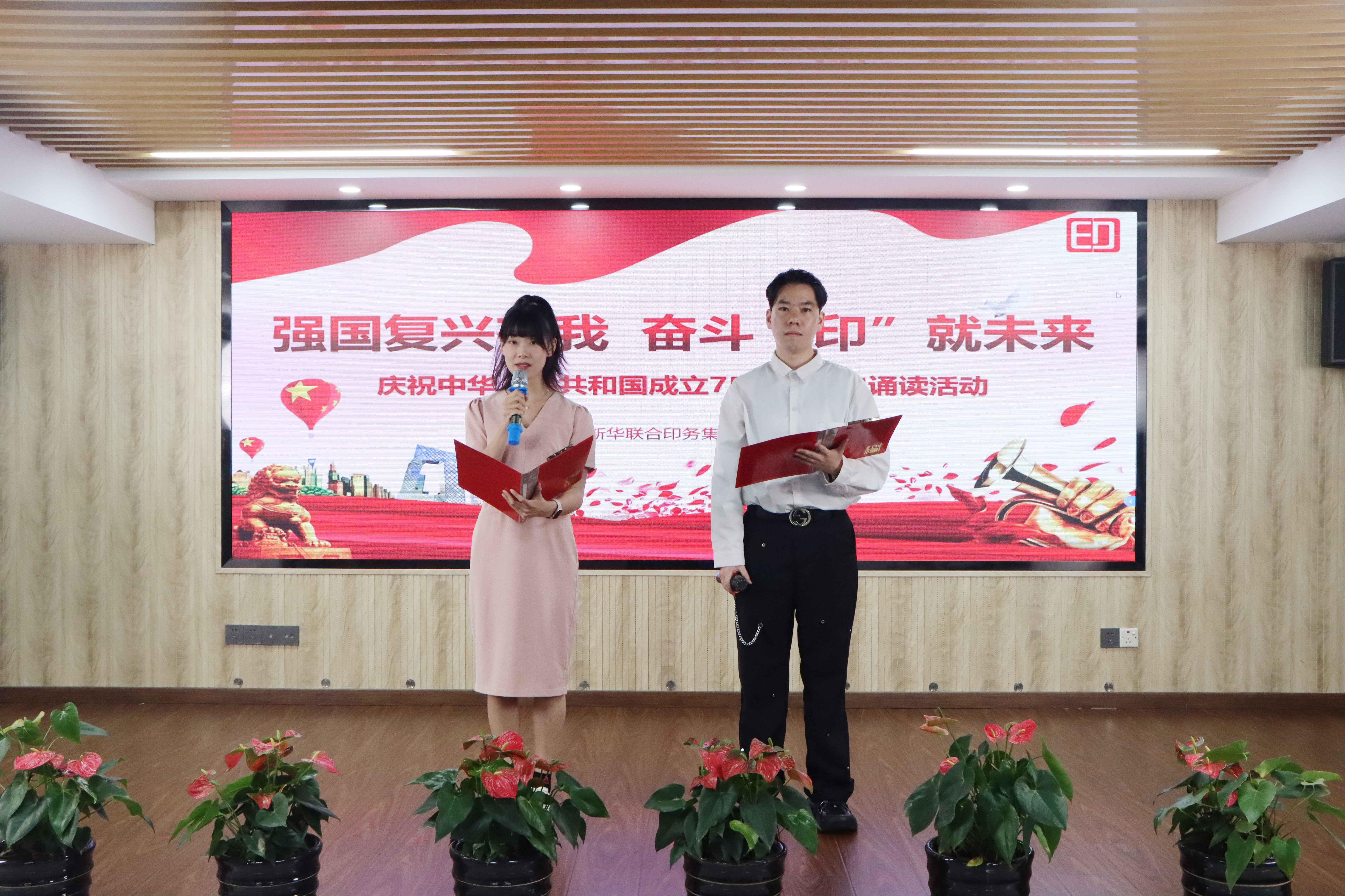 为庆祝建国75周年,深刻领会习近平总书记对弘扬爱国主义精神的相关重要论述,教育引导集团广大干部职工厚植爱国之情、砥砺强国之志、实践报国之行,9月27日上午,印务集团举办了以“强国复兴有我,奋斗印就未来”为主题的爱国诗文经典诵读活动。印务集团领导班子黄翔、缪后卫、林奋、蔡志明、林庶杰、陈良清出席活动。