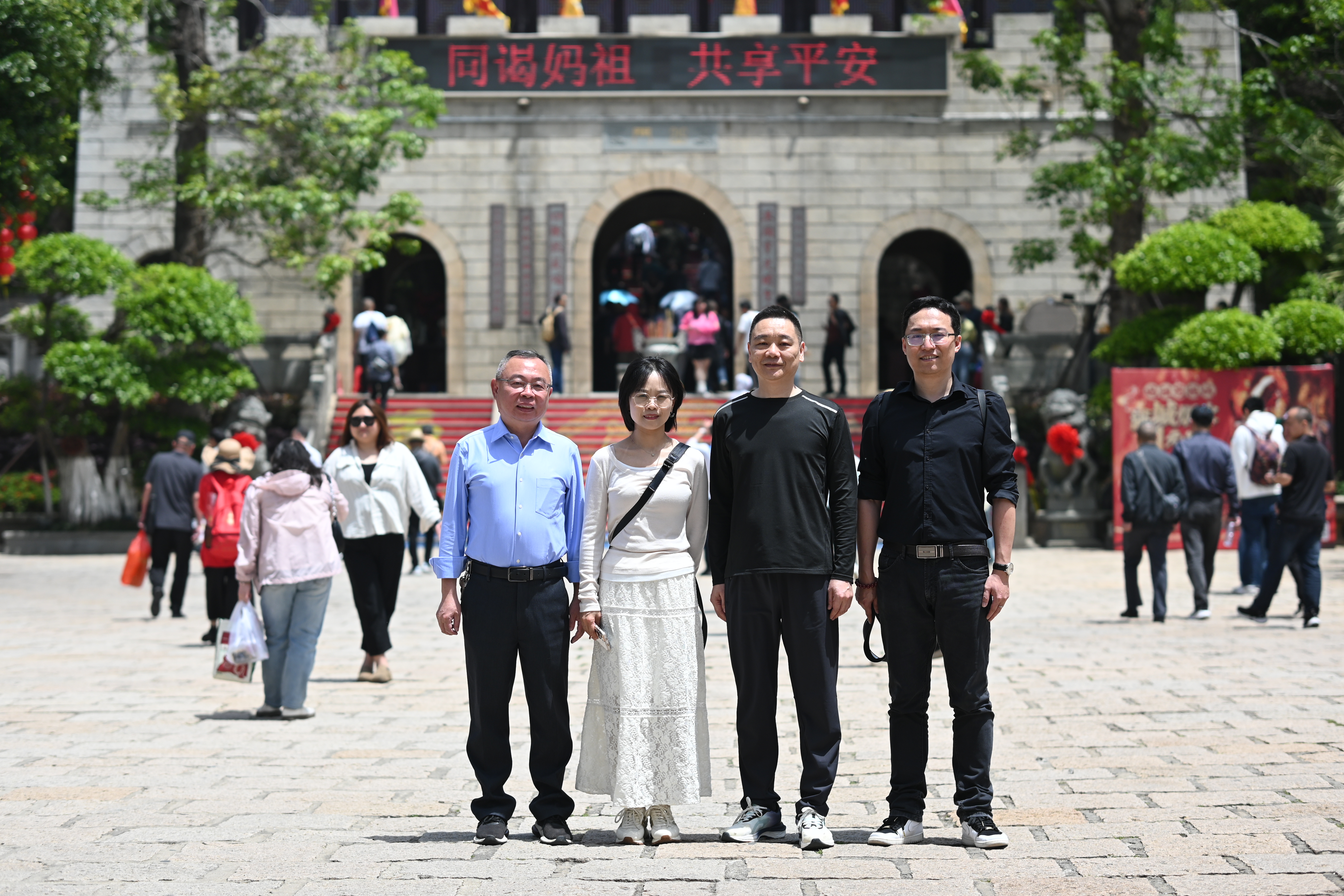 活动当天,职工们乘坐大巴转乘渡轮登岛。首站到湄洲祖庙,大家沿着“太子殿-升天古迹-天后宫”的路线,在依山层叠的古建筑群间攀登。随后,队伍步入妈祖文化园,于山巅俯瞰岛屿全貌,错落有致的建筑群与碧海蓝天相映成趣,大家纷纷驻足,用镜头记录这壮阔景色。