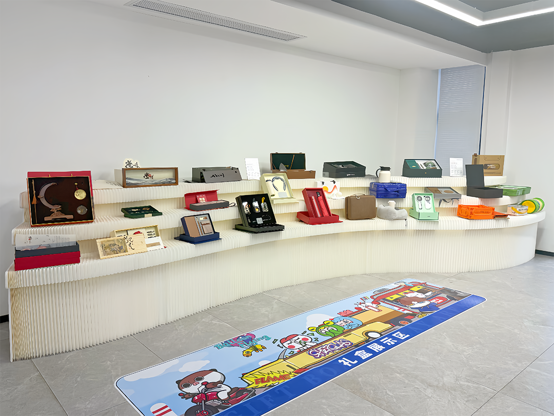 展厅内三大主题区域各具风韵,却又浑然一体,全方位展现文化创意的多元魅力。礼盒展示区里,一款款文创礼盒从外包装设计到内在产品搭配都尽显匠心,无论是节日馈赠还是个人收藏,都能找到适配的选择;照片影像区则是 “时光的容器”,这里涵盖相片打印、毕业相册定制、亲子相册制作以及艺术画框装裱等服务,一张张照片、一本本相册,将生活中的珍贵瞬间定格成永恒;文创产品展示区更是琳琅满目,自有 IP 衍生品贯穿生活方方面面 —— 融合实用与美学的笔记本、印有可爱 IP 形象的服饰、兼具功能性与设计感的雨伞等一应俱全,更有围绕地域文化特色与非遗传承开发的专属文创产品,让文化创意真正融入生活美学,助力人文精神代代相传。