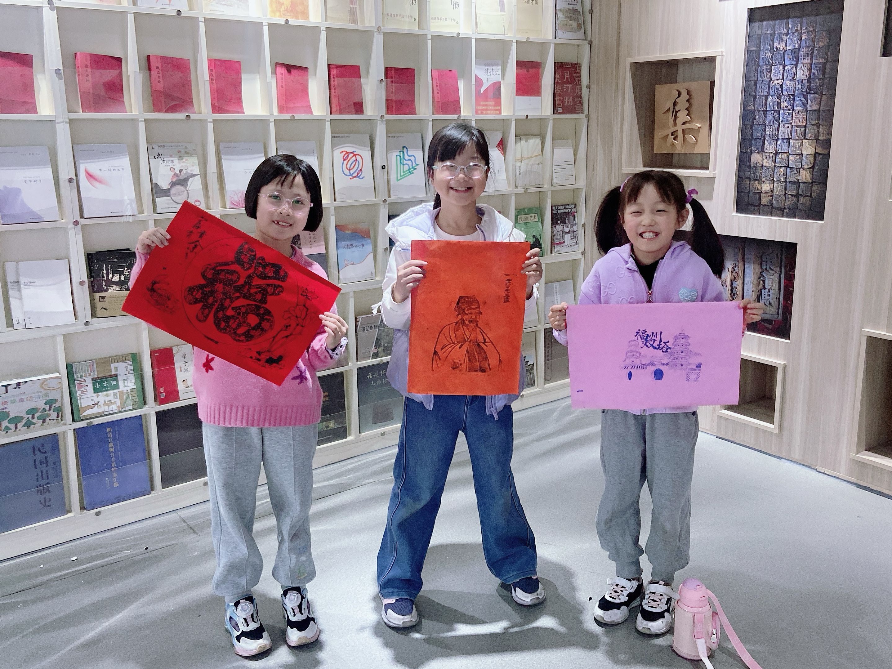 本次研学围绕“纸与印刷”展开主线探索。在印刷文化展厅,学员们从古法造纸工艺到现代印刷技术演进,系统了解了纸张文明与印刷发展的历程。随后走进印刷车间,亲眼见证课本诞生的现场,感受知识传播背后的真实印记。活动中,学员们还参观了“新华印像”品牌文创展厅,在“夏格拉斯”与“非常家族”等生动的形象与文创产品中体会IP从设计到落地的全过程。最后的匠心拓印体验环节,孩子们通过油墨印刷与丝网印刷的实践,亲手完成属于自己独一无二的作品,在协作中感受印制艺术的魅力。